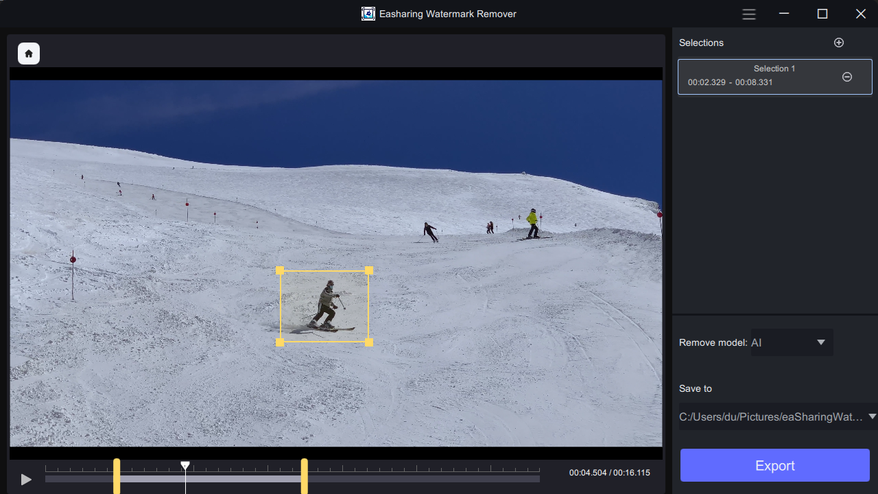 Preview the effect of watermark removal effect and click on Export button to erase video watermark.